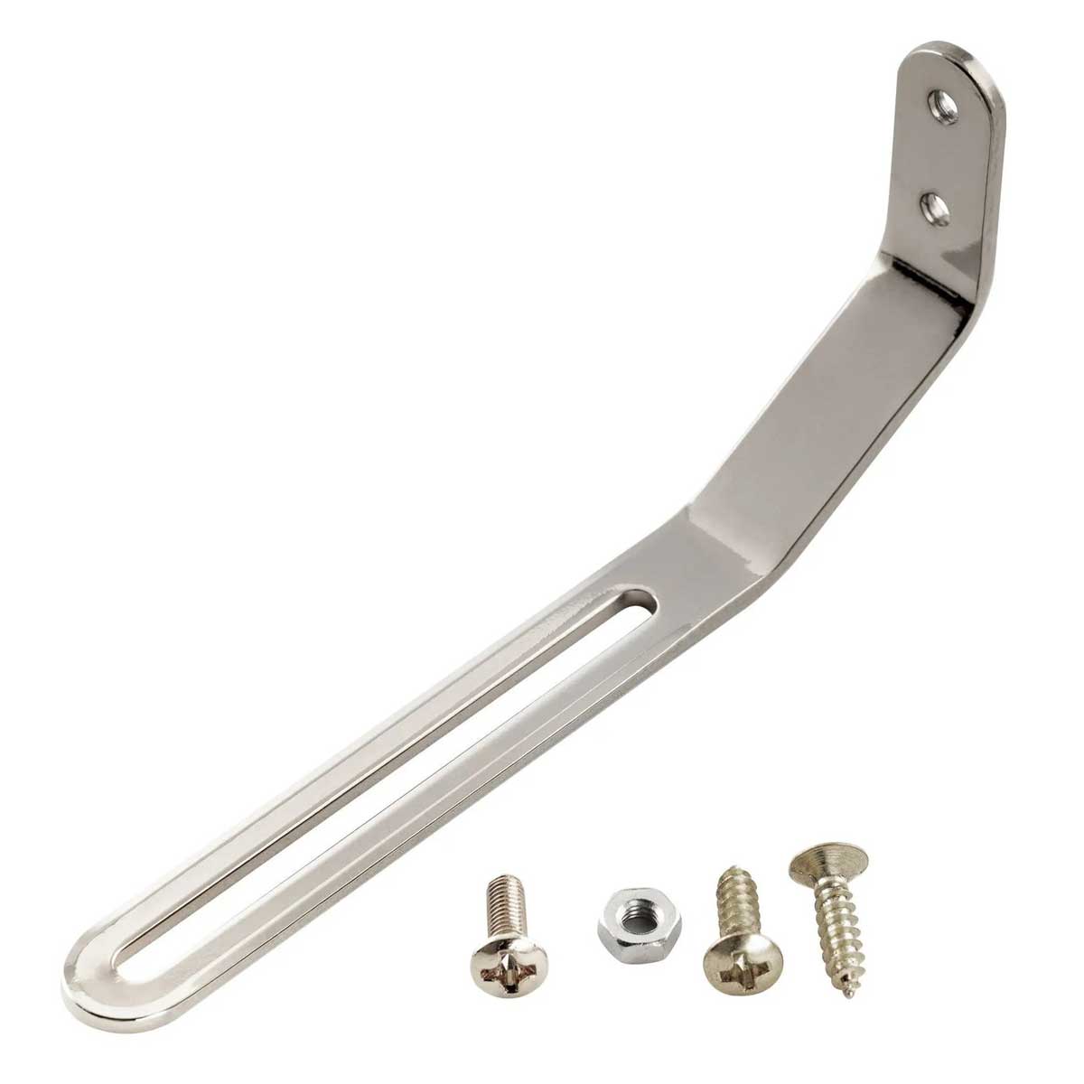 Pickguard Mounting Bracket fits most Gretsch and other arch-top hollow body guitars. Includes nut and screws.